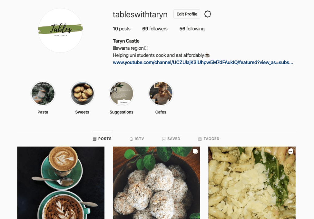 Heya! I’m Taryn and this is my Digital artefact for 2020. As apart of this digital artefact I will be finding the very best places to eat, and recipes to cook at home on a budget and study as uni students. I will be posting regularly on this Instagram page about the cafes I find, pricing, my experience studying and the accessibility of each of the places I visit, as well as posting blogs/vlogs about my experience and my thoughts.